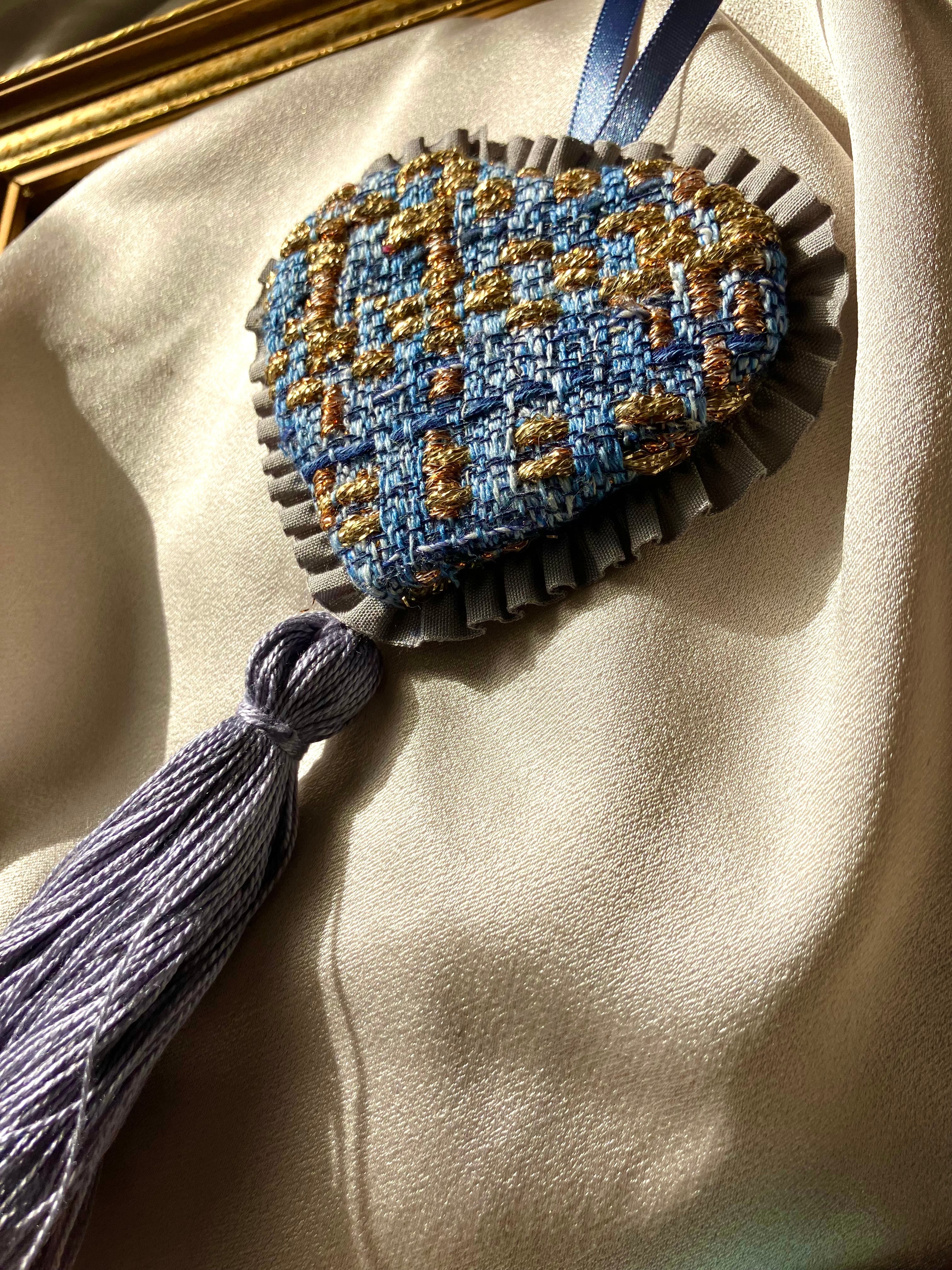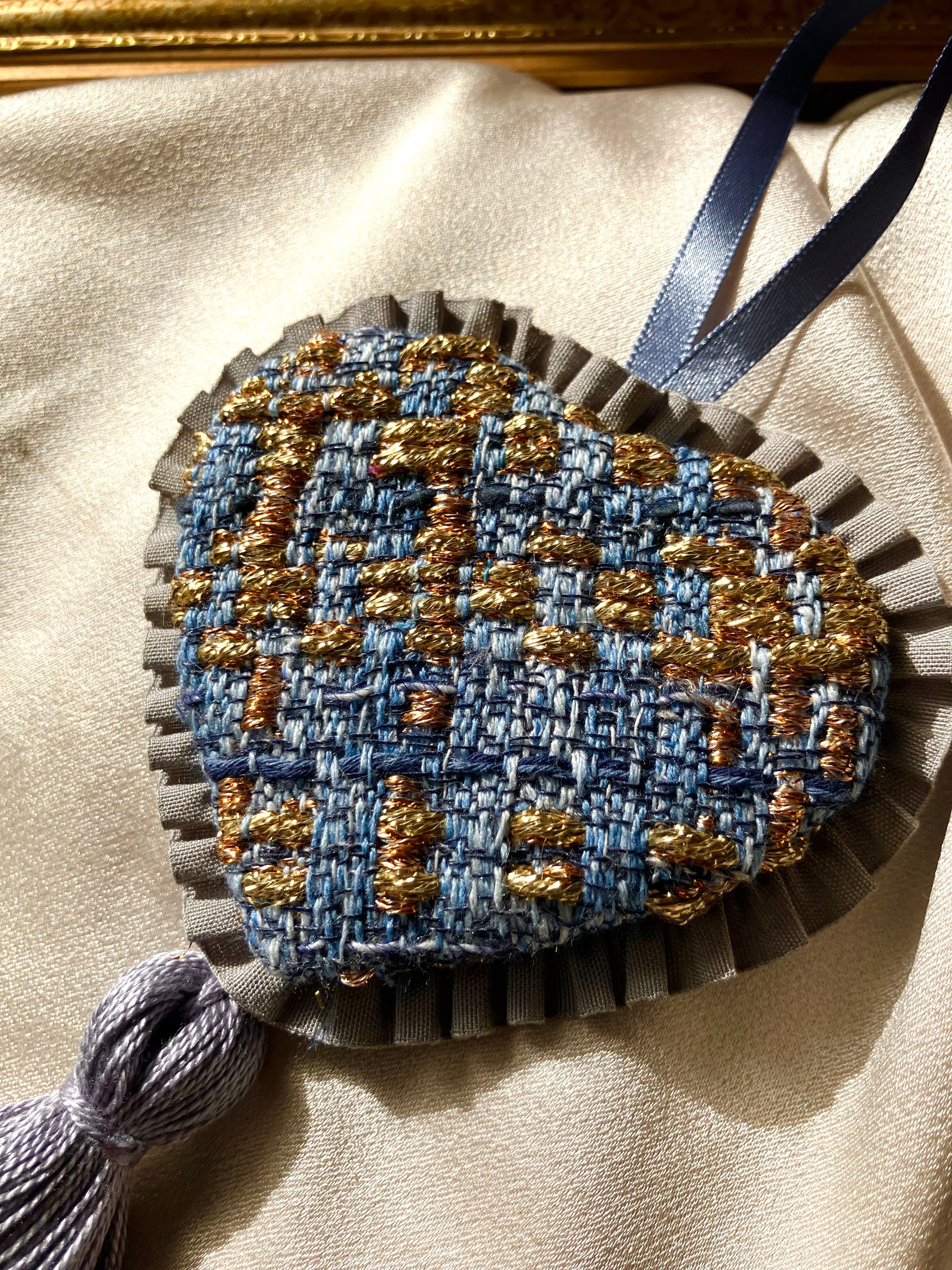 洗練された青とゴールドのアロマオーナメント。美しいコントラストが魅力的で、フレッシュなローズマリーの香りと相まって、日常の空間に特別な香りの演出をします。このアイテムは、心をリフレッシュしながら安らぎのひとときを提供します。ドアノブに飾ったり、リビングのインテリアとしても最適な存在感を持つアイテムです!