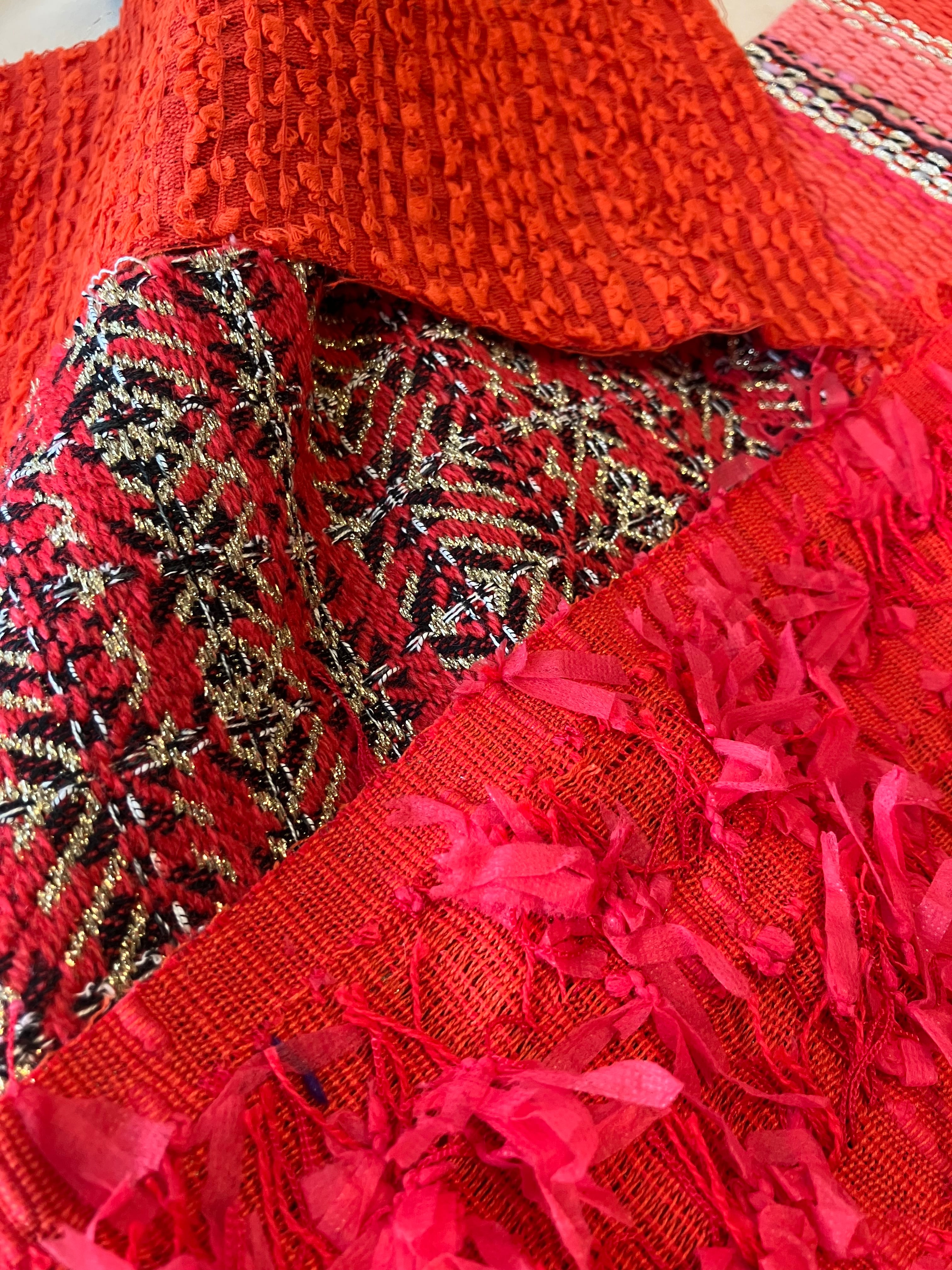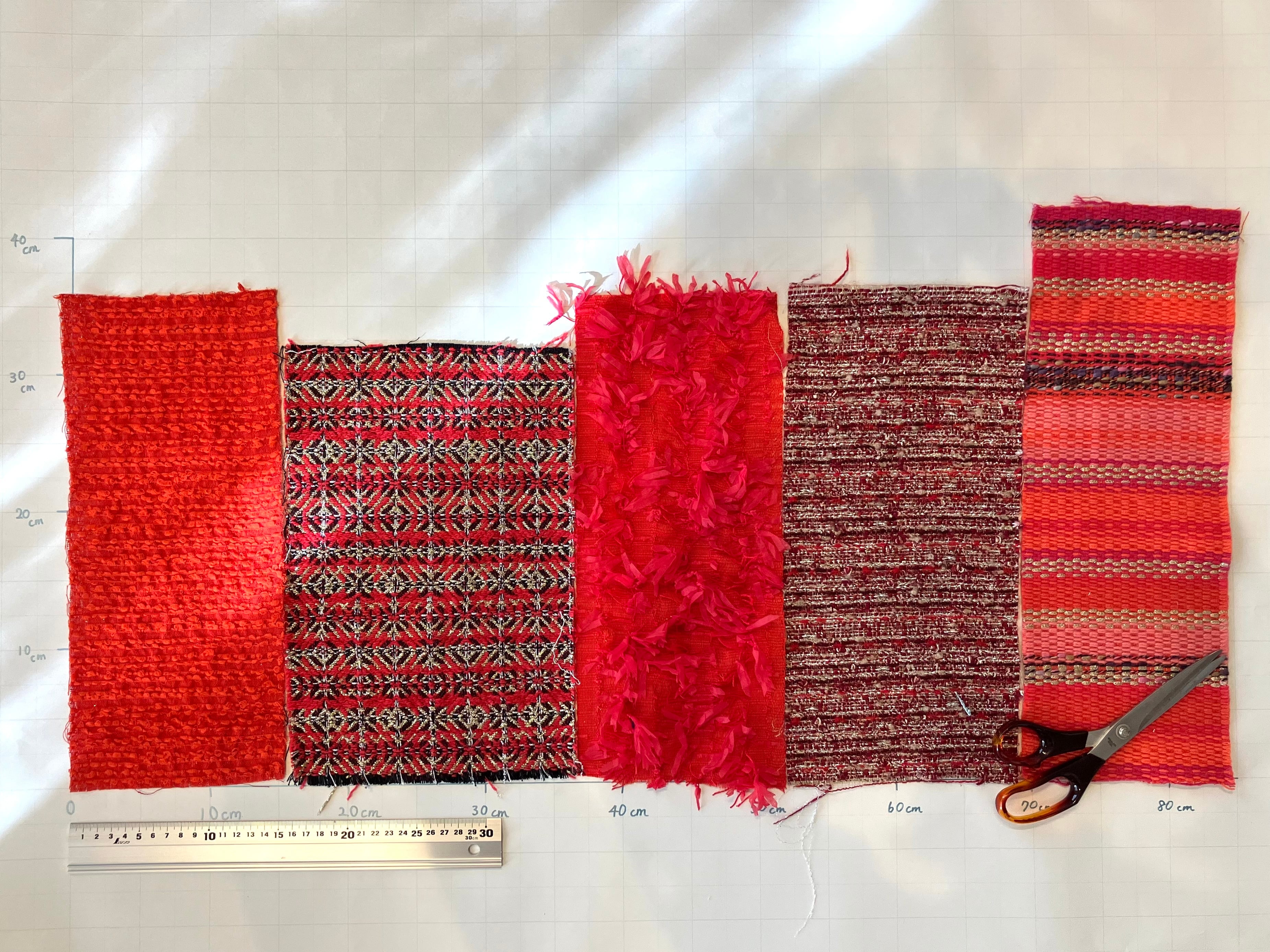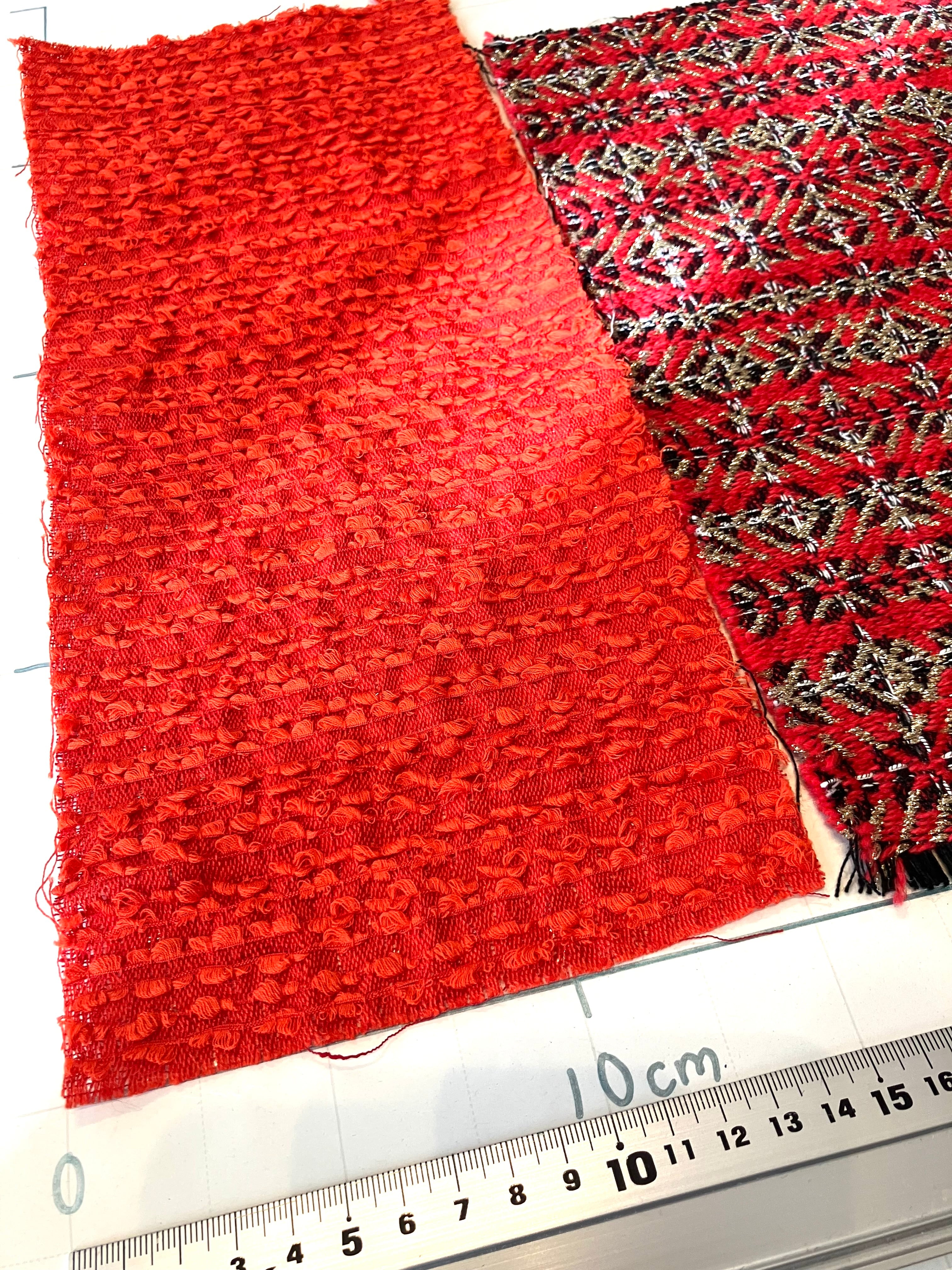 このツイードは、小物作りやがま口、リボンなど、様々な作品にご利用いただけます。赤の魅力で、あなたの作品に唯一無二の個性を与えてみませんか?