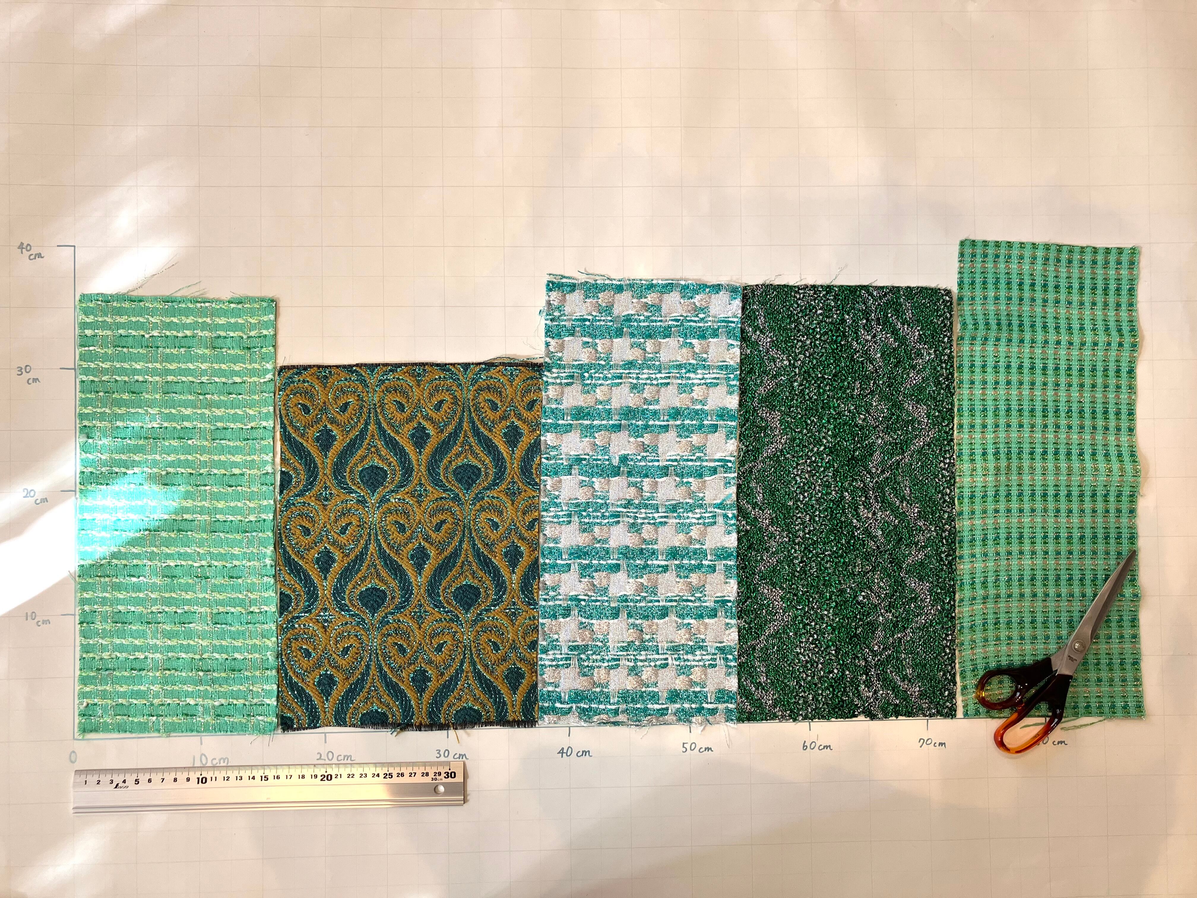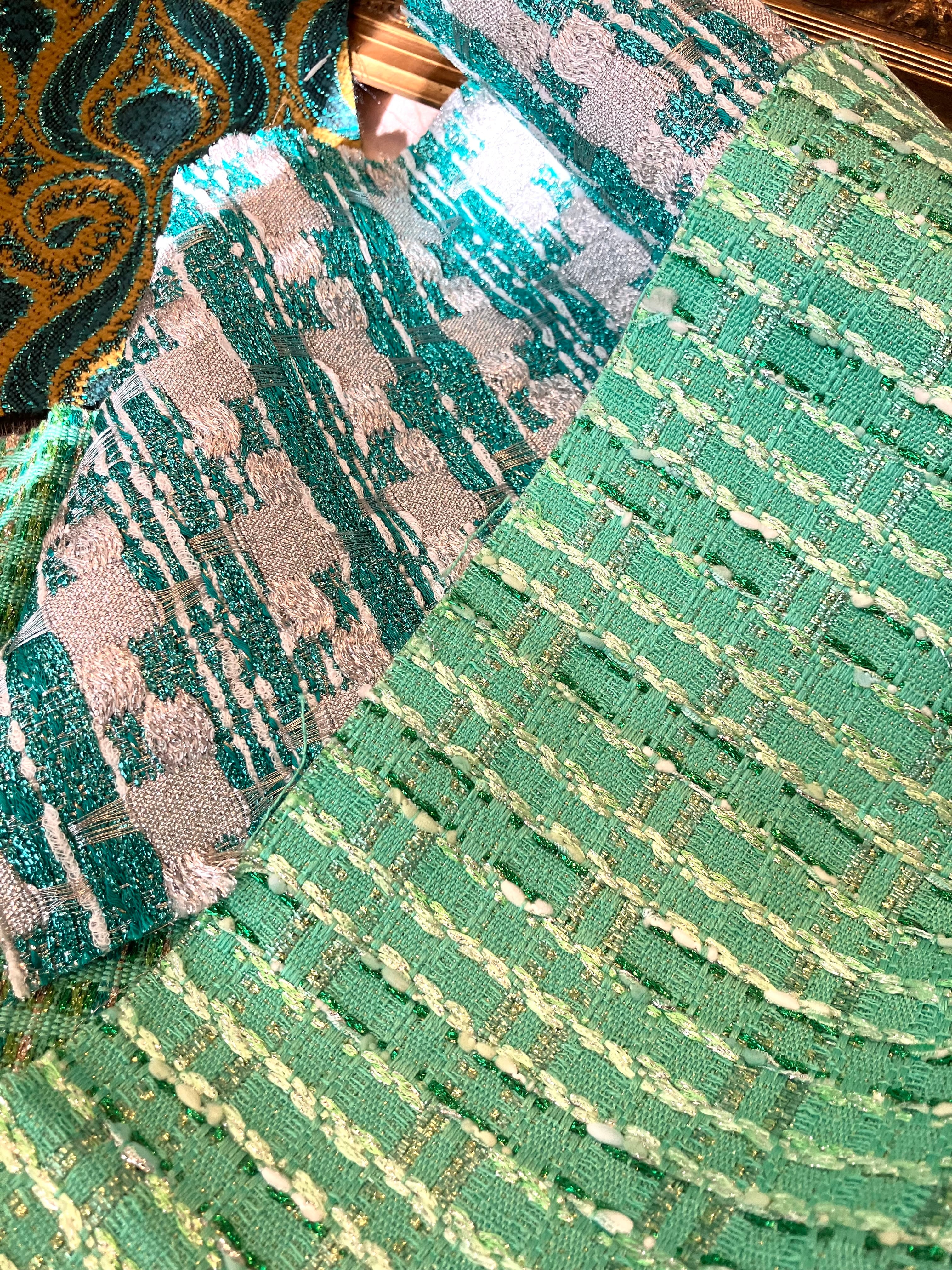 緑の美しさが際立つデザインのツイード5片です。この魅力的な色合いは、エレガントでありながら自然の息吹を感じさせ、あなたの作品にフレッシュな印象を与えます。