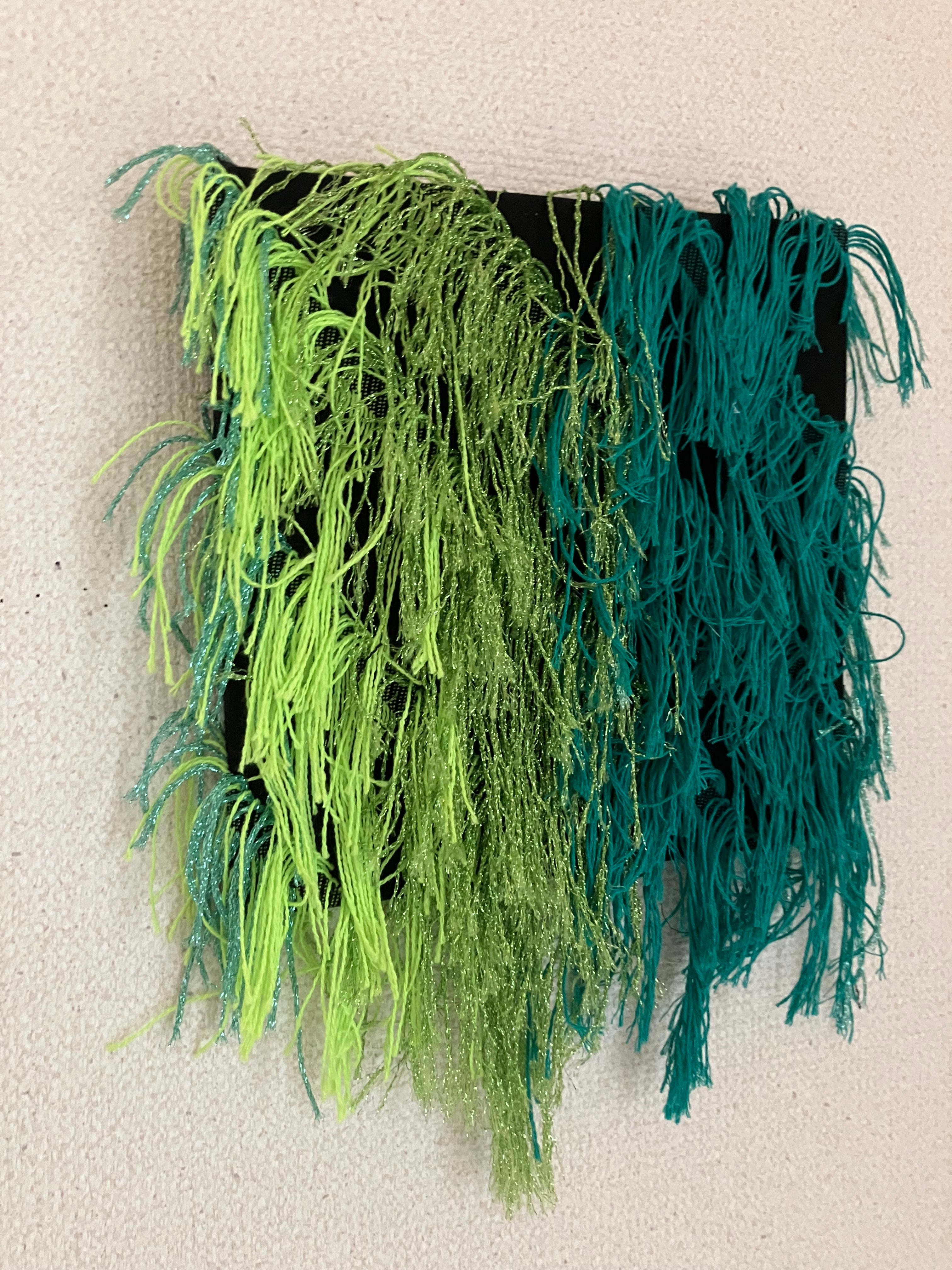 緑のフリンジが美しいアートパネルは、自然の力強さを感じさせる一品です。力強い自然のエネルギーを表現したこの作品は、見る人の心に刺激を与え、あなたのインテリアに活力をもたらし、心地よい空気を染め上げるでしょう。