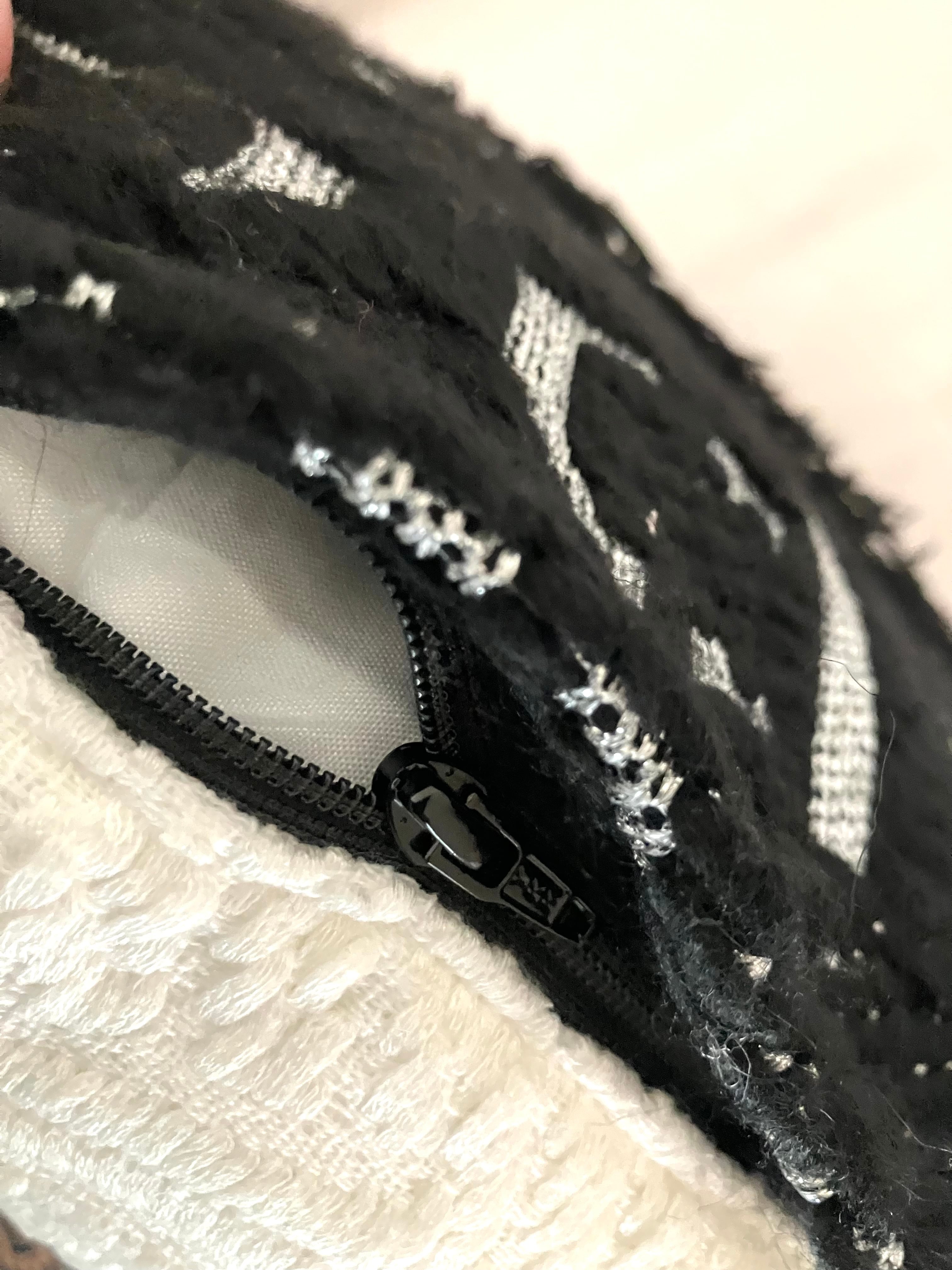 柔らかな素材感が特徴で、クッションとしての使い心地は抜群です。心地よいひとときを楽しみたい際に、このクッションが寄り添い、安らぎのひとときを提供してくれることでしょう。裏地には白のオートクチュール素材を使用し、中材にはたっぷりと綿が詰められています。チャックも付いているので、使用するごとに綿を追加して、好みの厚さに調整することができます。