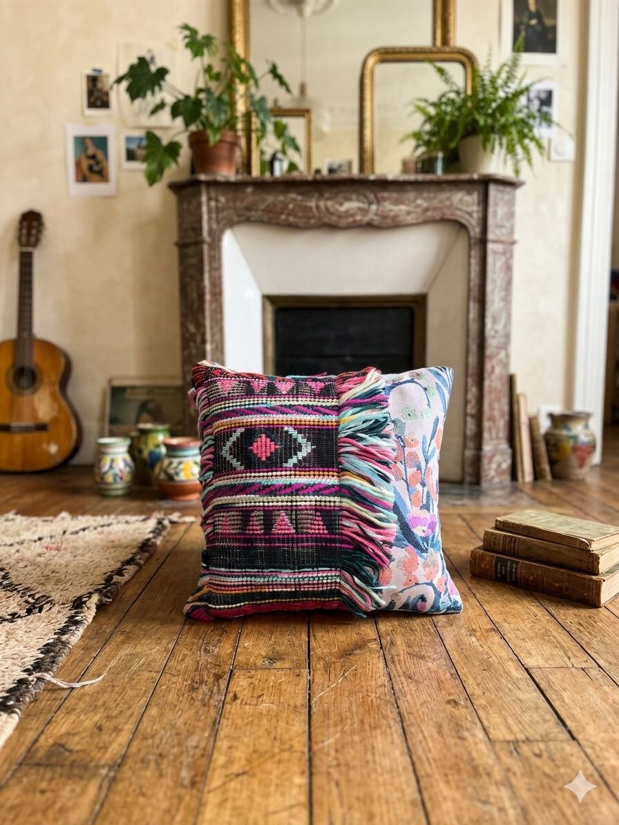 ボヘミアン調の魅力をたっぷりと感じられるFrench Tweed Cushion 005は、遊び心が詰まったアイテムであり、揺れるフリンジが楽しげな雰囲気を演出します。