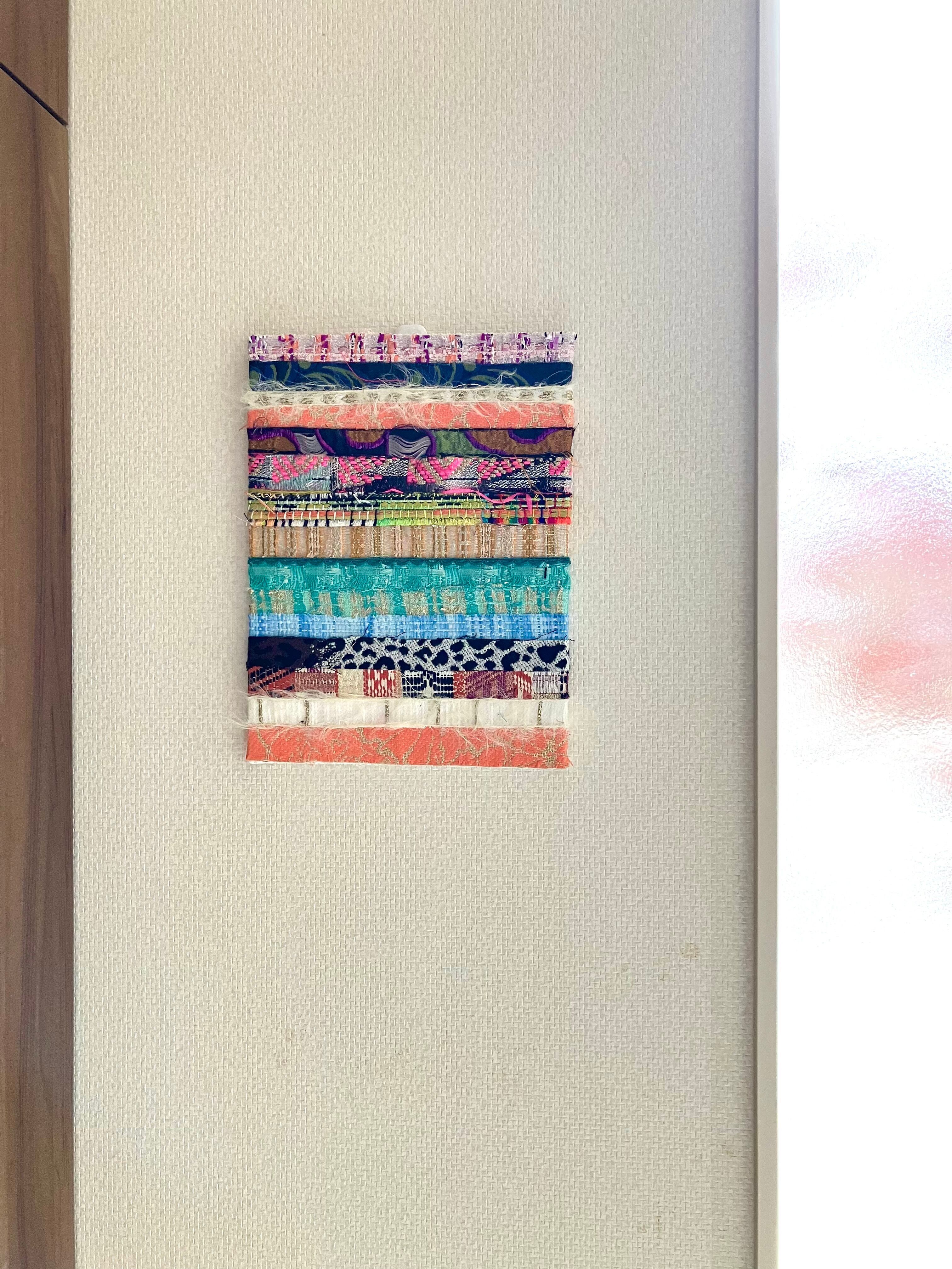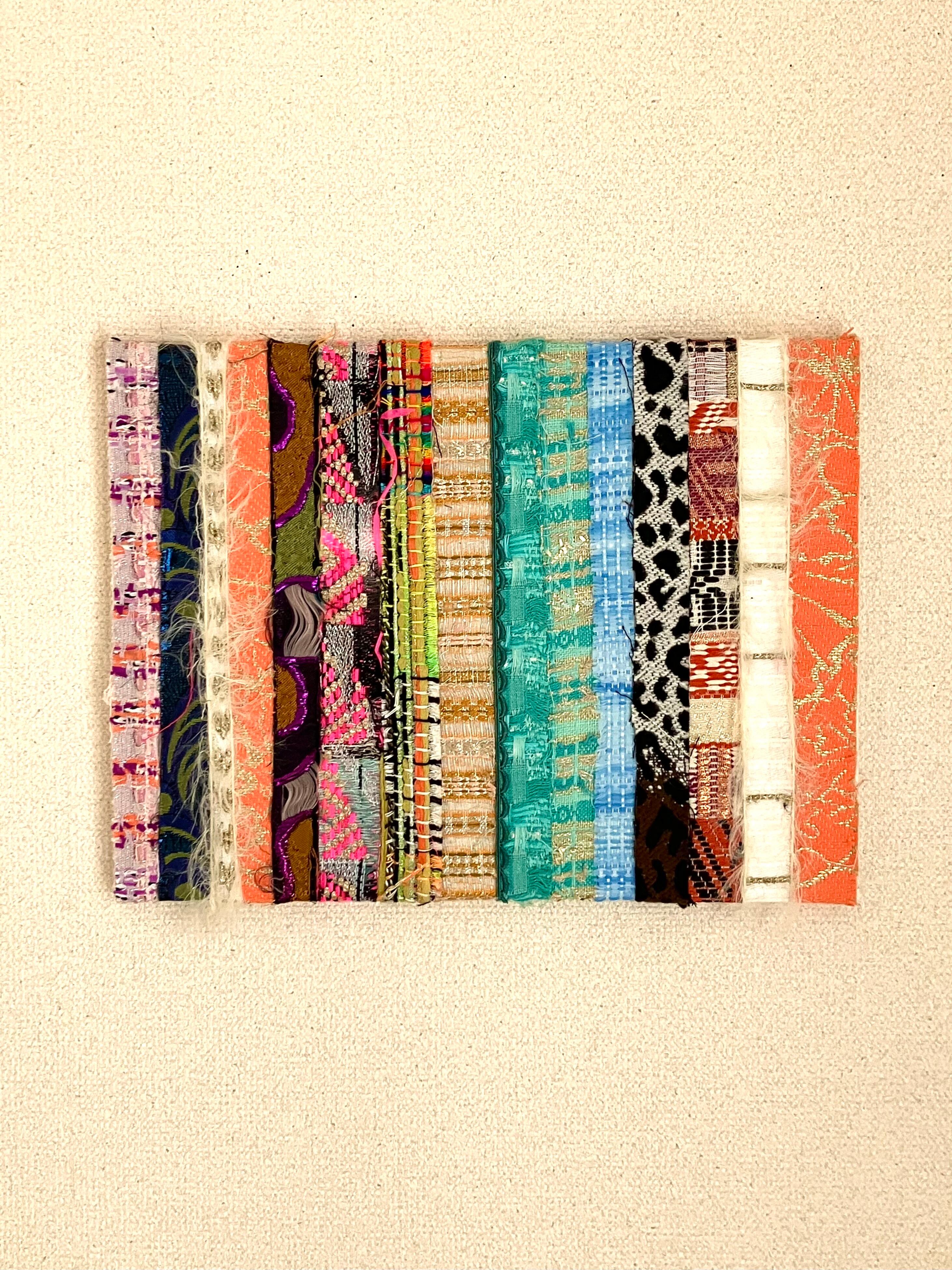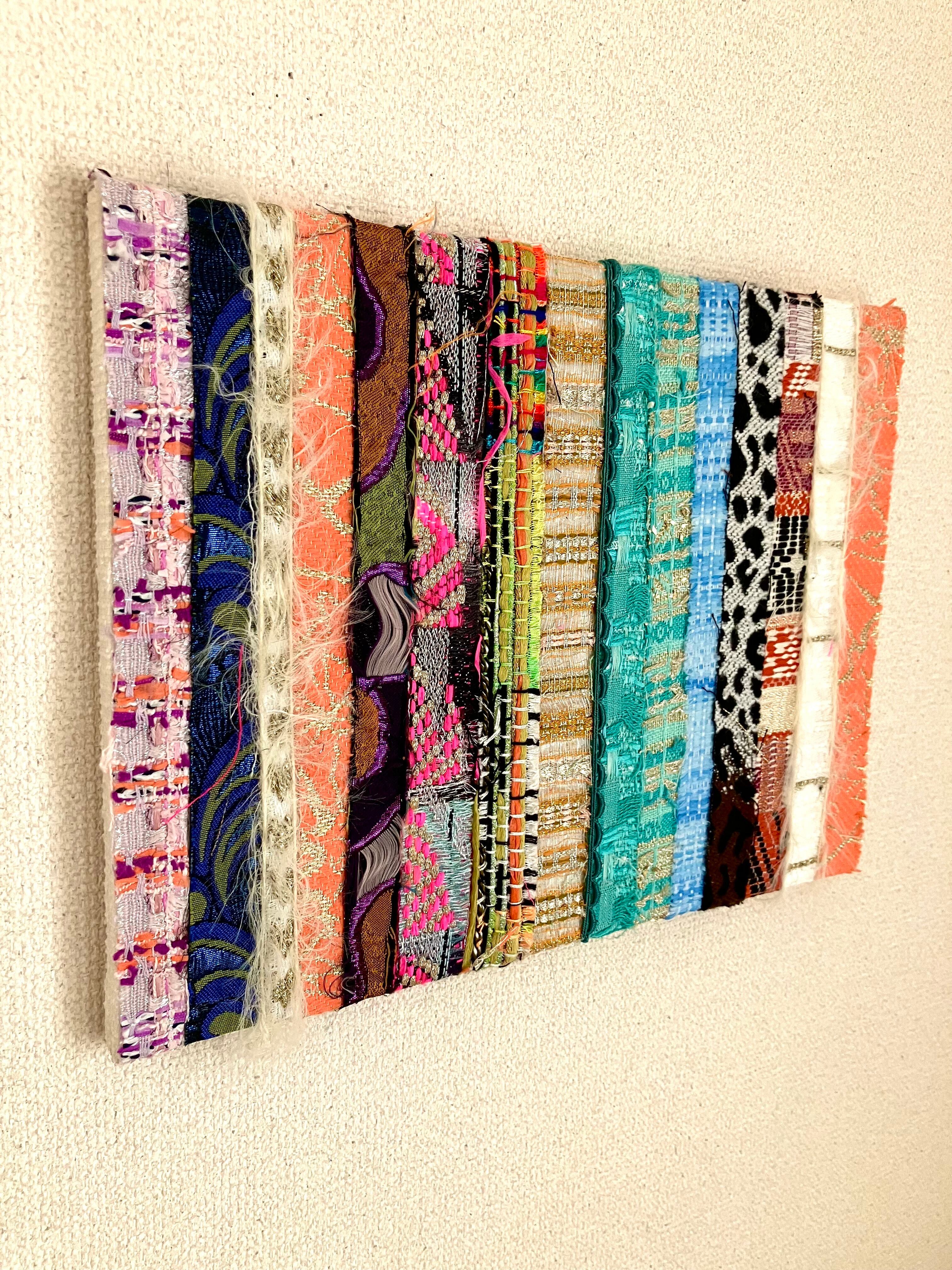 オレンジを基調にした華やかなデザイン、アートパネル Jewel Art Panel / Mix Stripe 002は、水色やピンク、そしてオートクチュールツイードを贅沢に使用した個性的なアイテムです!