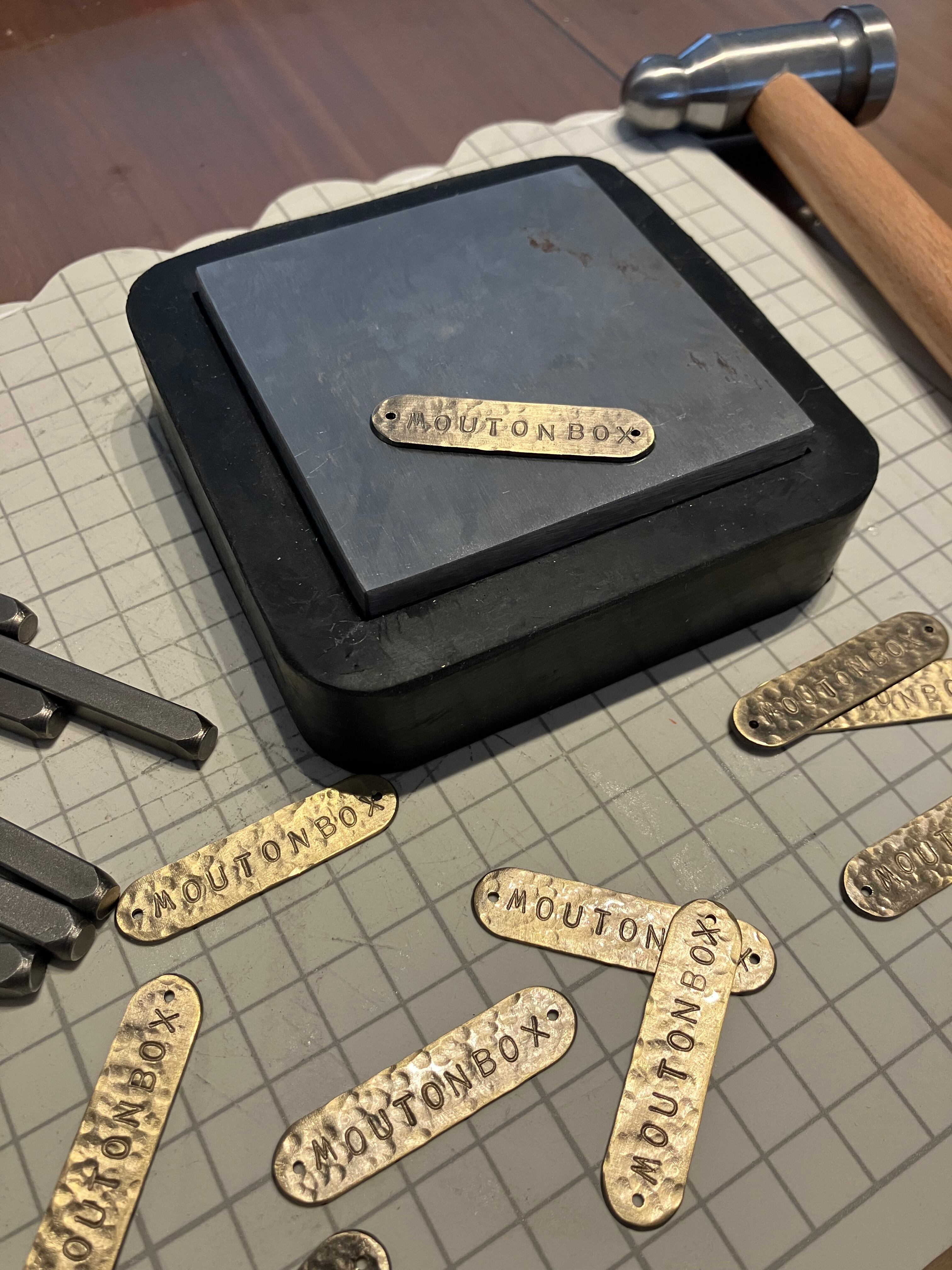 真鍮製プレートに8文字以内の数字又はアルファベットを無料で刻印し、お付けできます。記念日や名前、イニシャル等お伝えください。