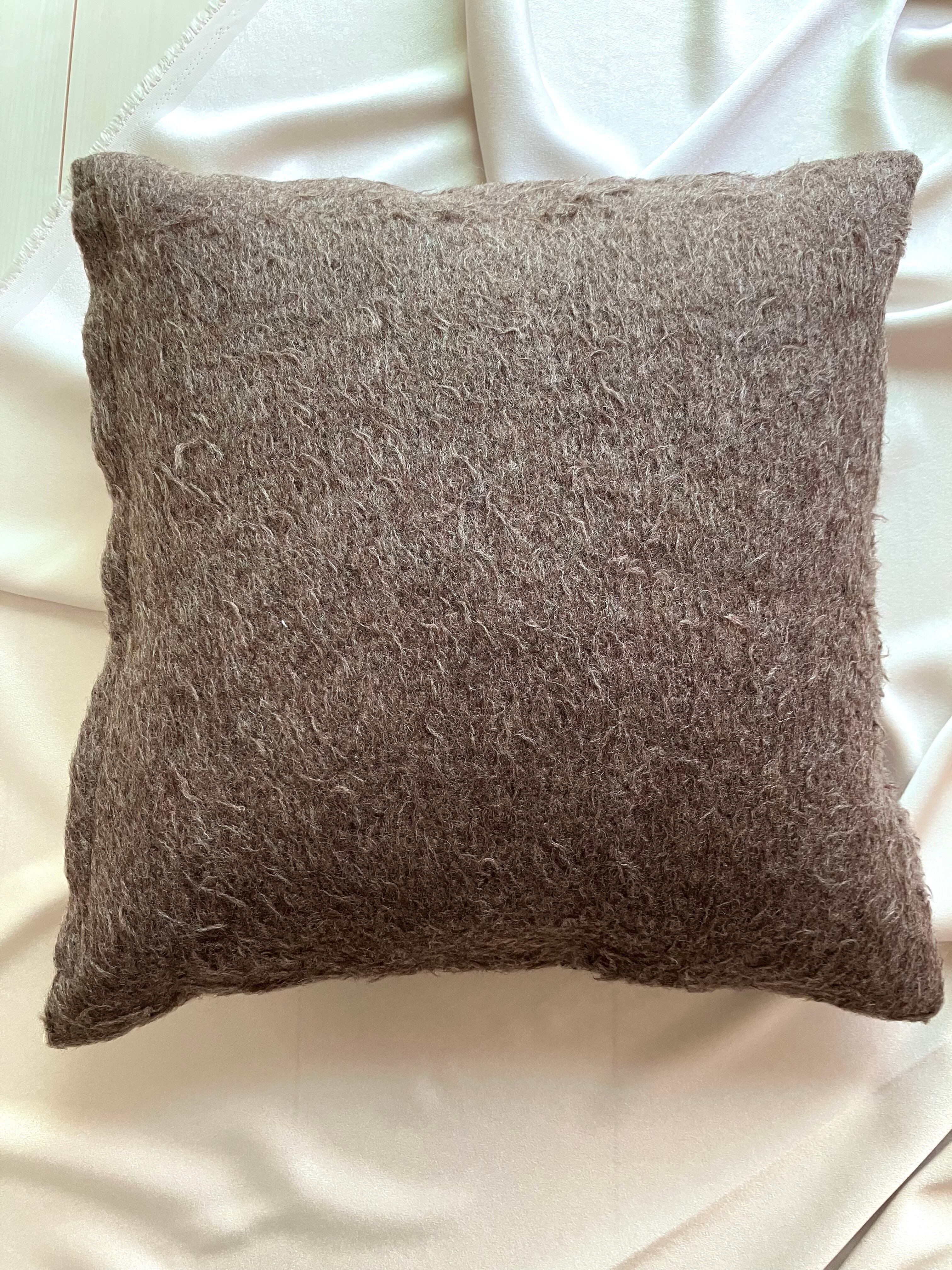 This cushion's textured, three-dimensional weave offers a delightful experience, with its expression changing depending on the angle from which you view it. The warm brown wool on the back provides an exquisite touch with every interaction. Placing it in your living room or bedroom will create a chic and stylish atmosphere, enhancing the overall impression of your space! The refined monochrome palette and sumptuous feel promise to deliver a special accent to your interior. Enjoy moments of relaxation amidst rich textures!