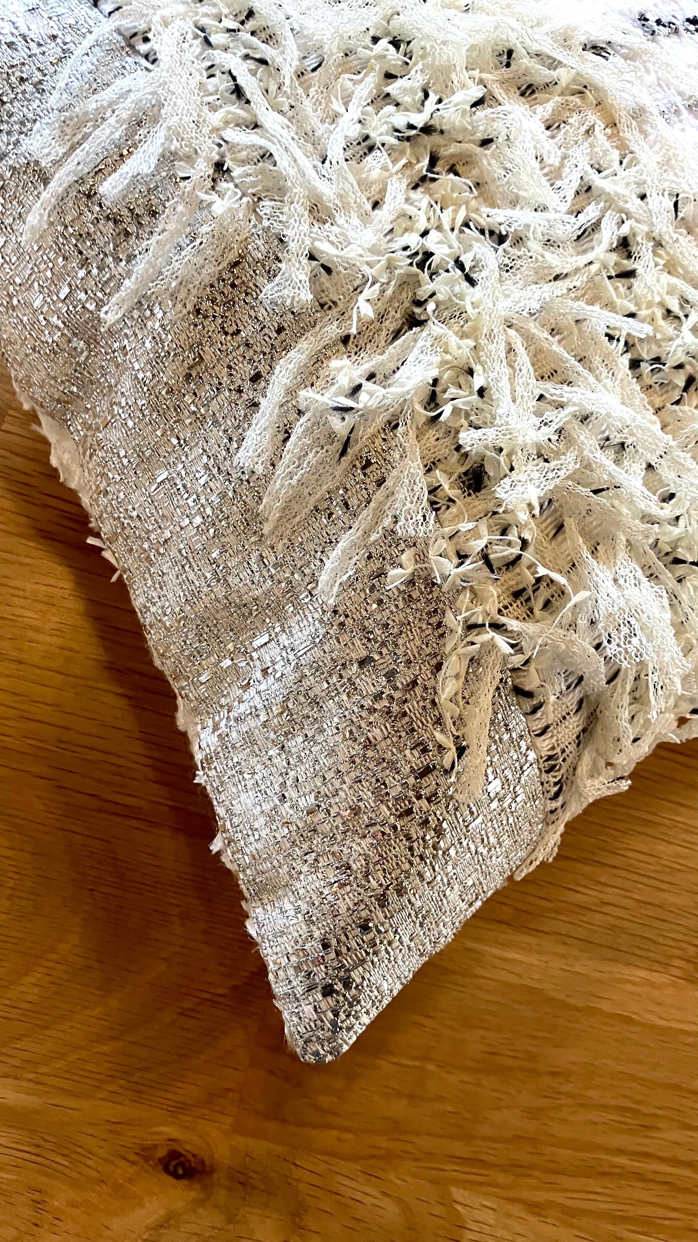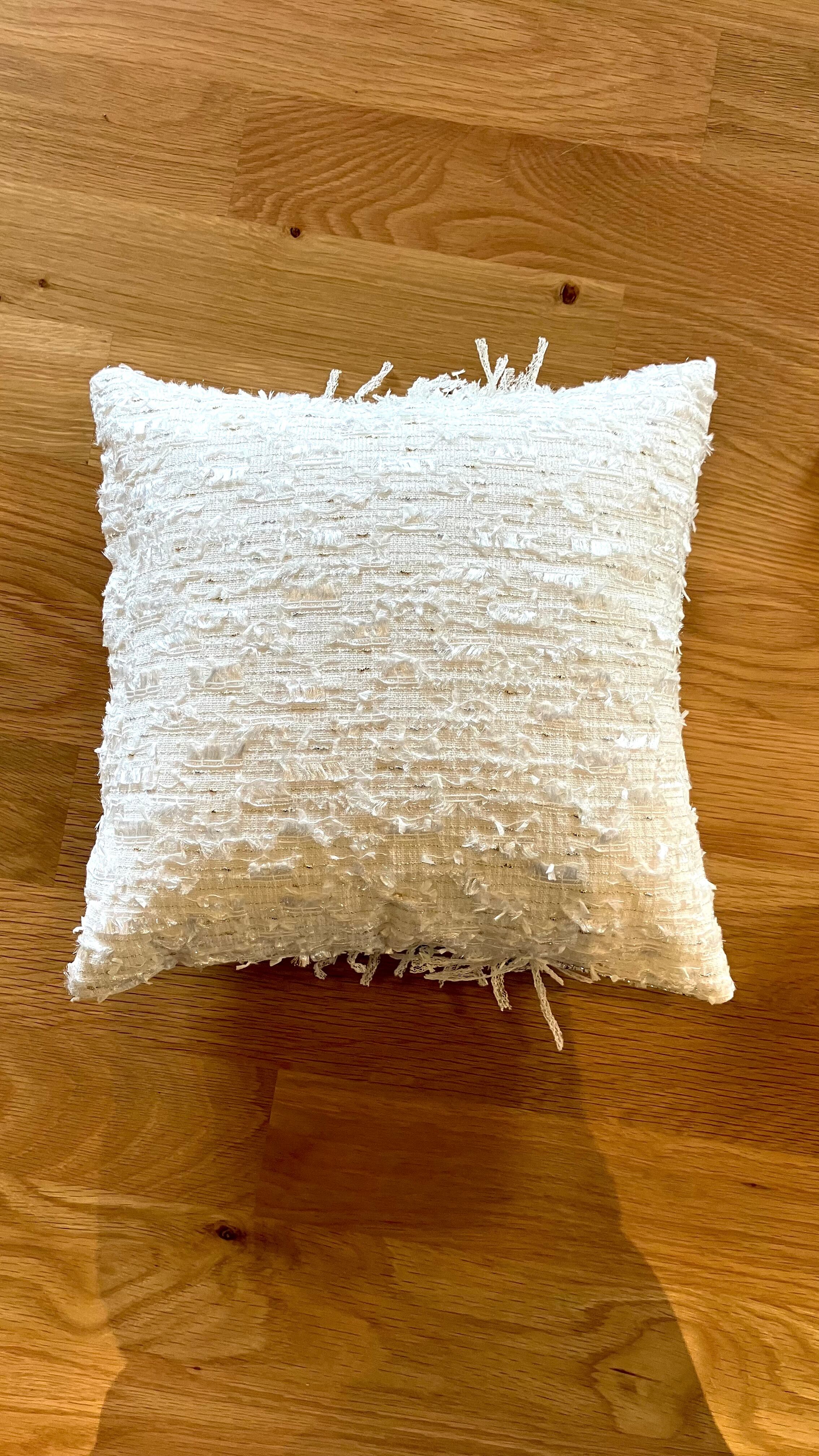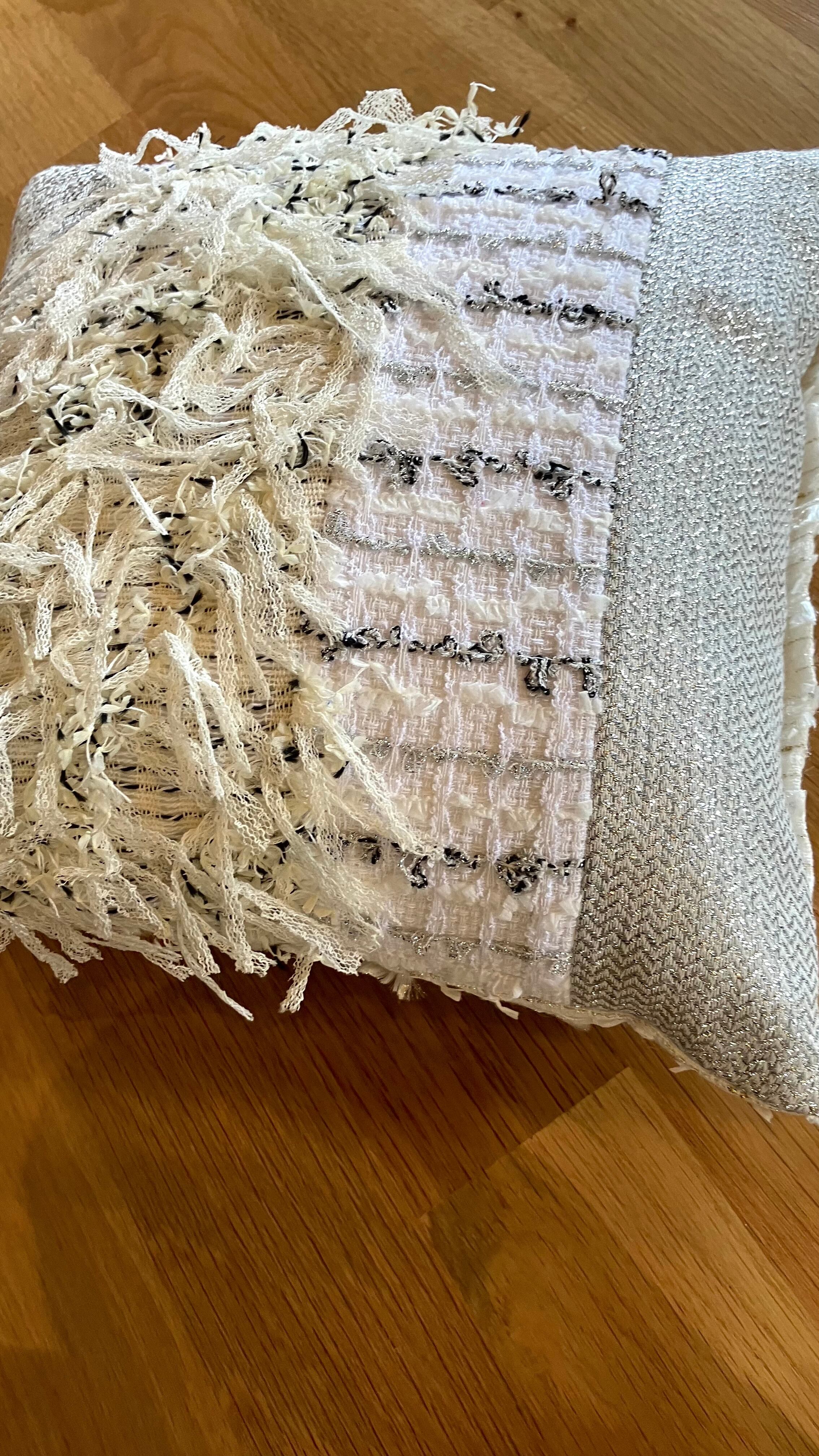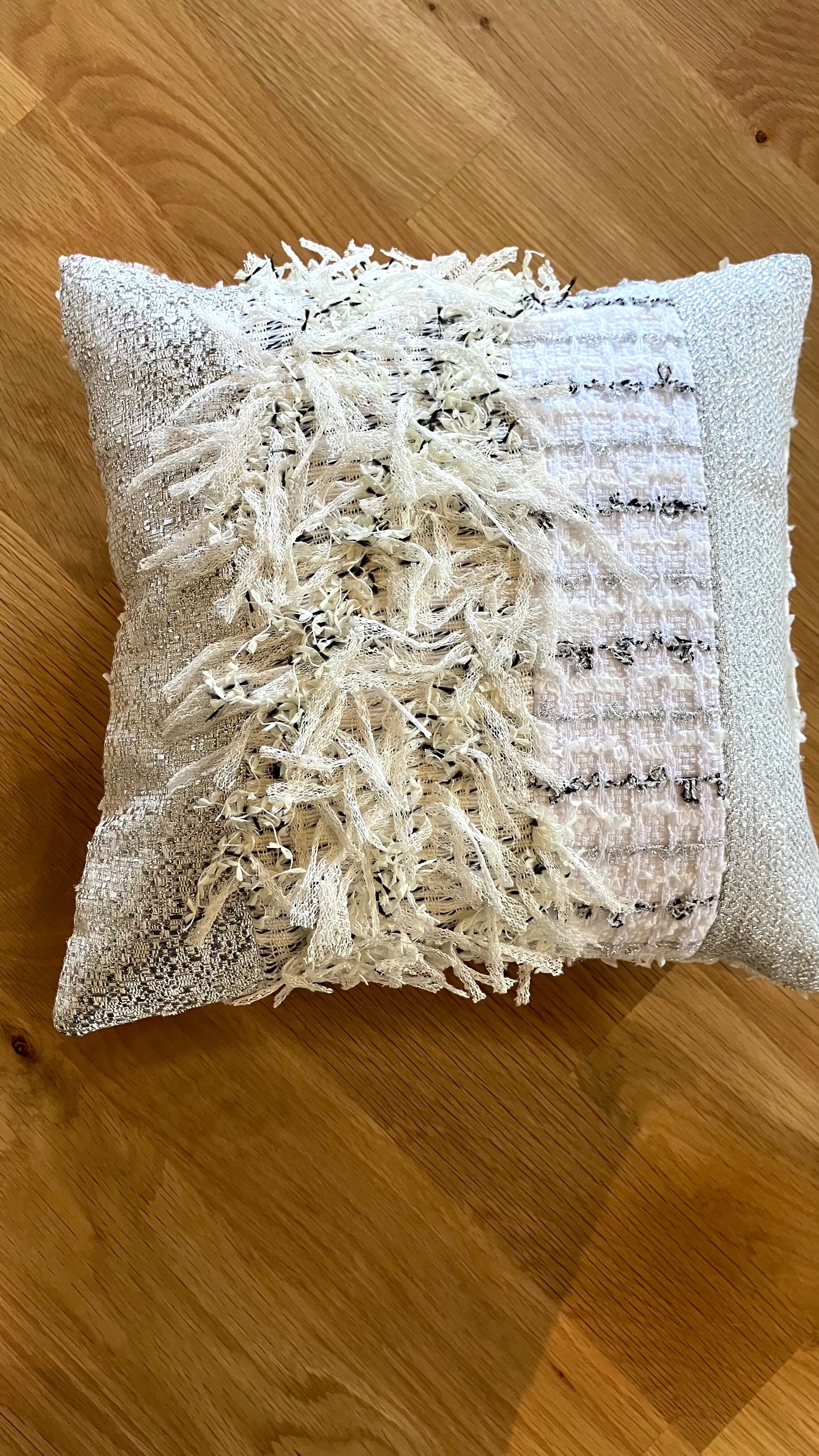 A truly artistic piece, combining the finest French and Japanese tweed. The Couture Cushion -Harmonie-001 exudes a subtle elegance amidst a serene white base. It blends seamlessly into any interior, elegantly enhancing any space.