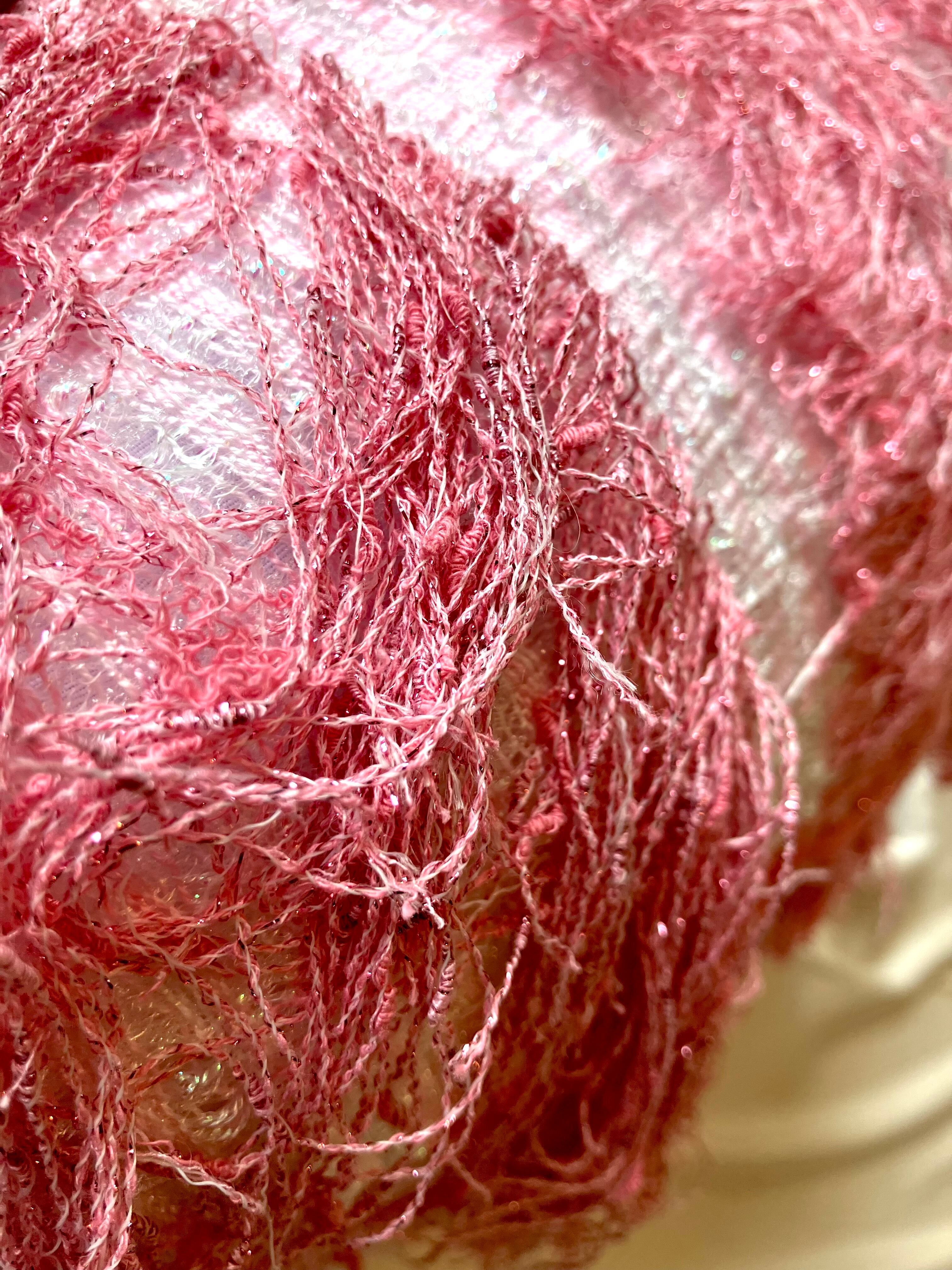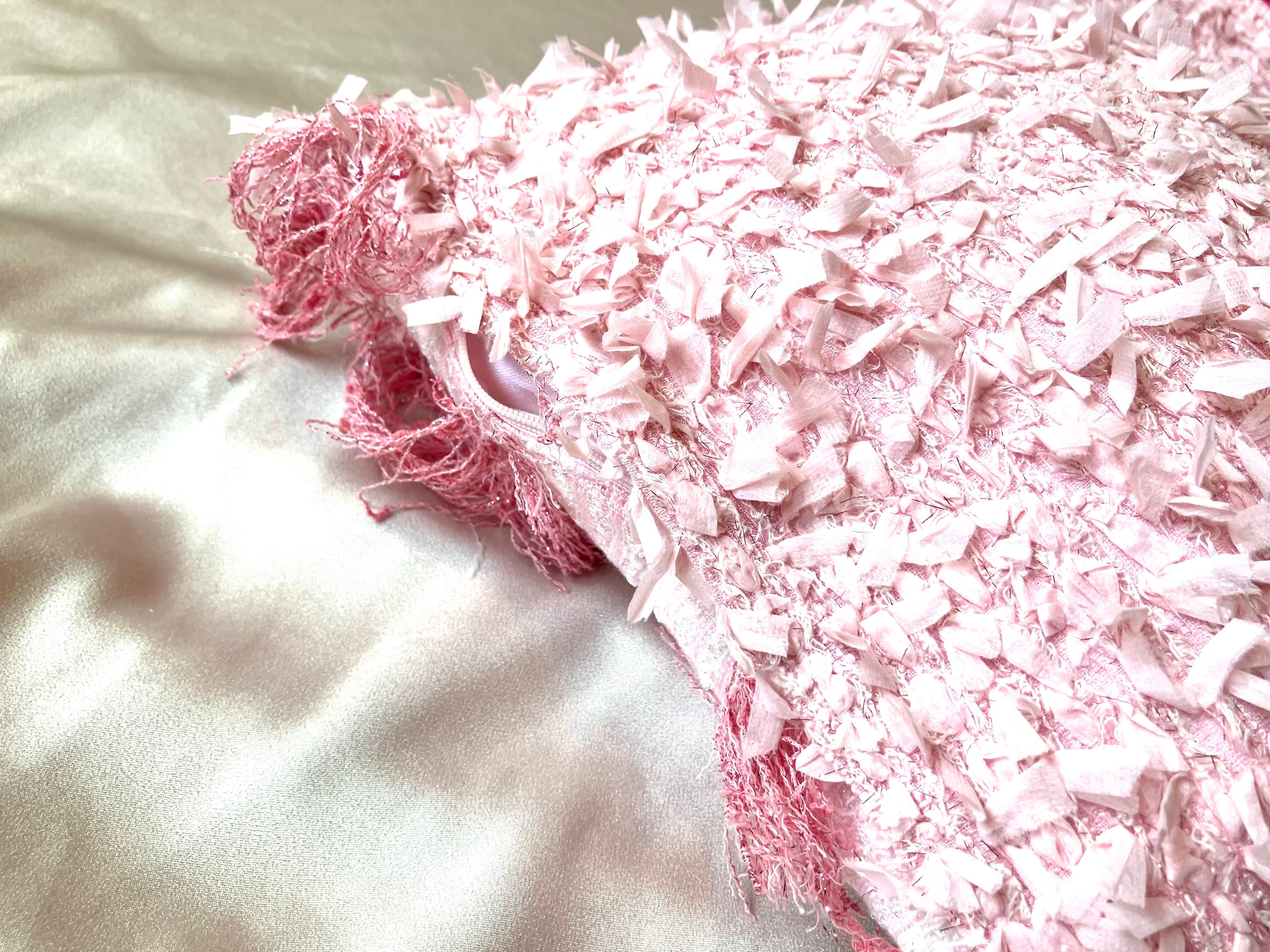 フランスと日本の最高級ツイードが見事に融合した、Couture Cushion -Harmonie-003。たっぷりとしたフリンジとリボンフェザーが織り込まれ、パリコレの華やかさを思わせる一品です。このクッションは、あなたの空間に洗練された美しさと優雅なアクセントを加えます。